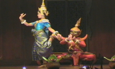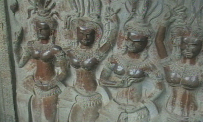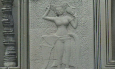 Een veel voorkomende afbeelding: Apsara, een vrouwenfiguur.