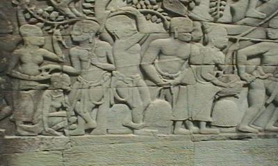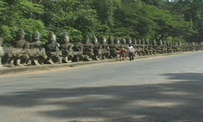 Angkor Wat moet ooit een plaats met 700.000 inwoners geweest zijn. Van de woningen is niets meer over. De muur (3x3 km) staat er nog en de gracht van 200m breed is intact. Alleen het tempelgedeelte en de muur waren van steen.