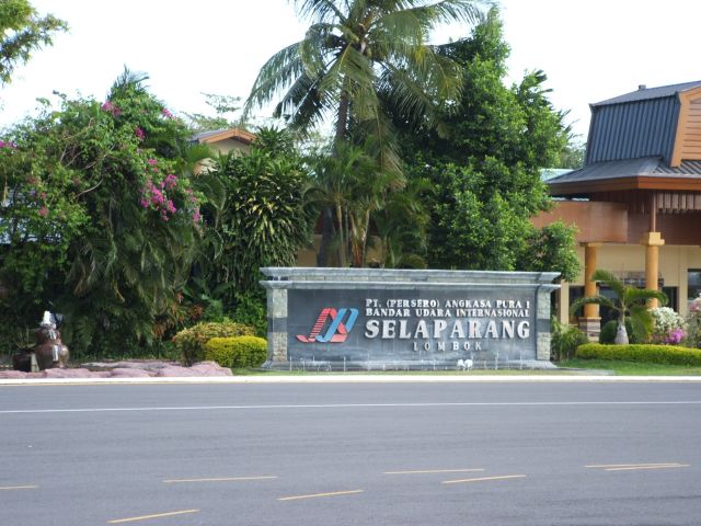Bandar Udara Internasional, ofwel het vliegveld van Mataram (Lombok) vanaf de startbaan