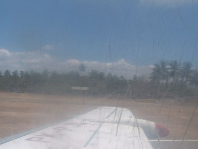 Landing van Fokker F 27 op Ngurah Rai. Ook de raampjes hebben hun beste tijd gehad.