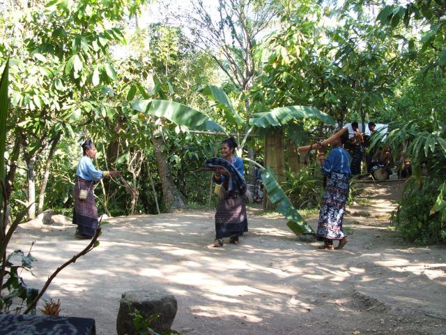 Vruchtbaarheidsdans. De vrouwen kouwen betelnoten, vandaar de rode monden.